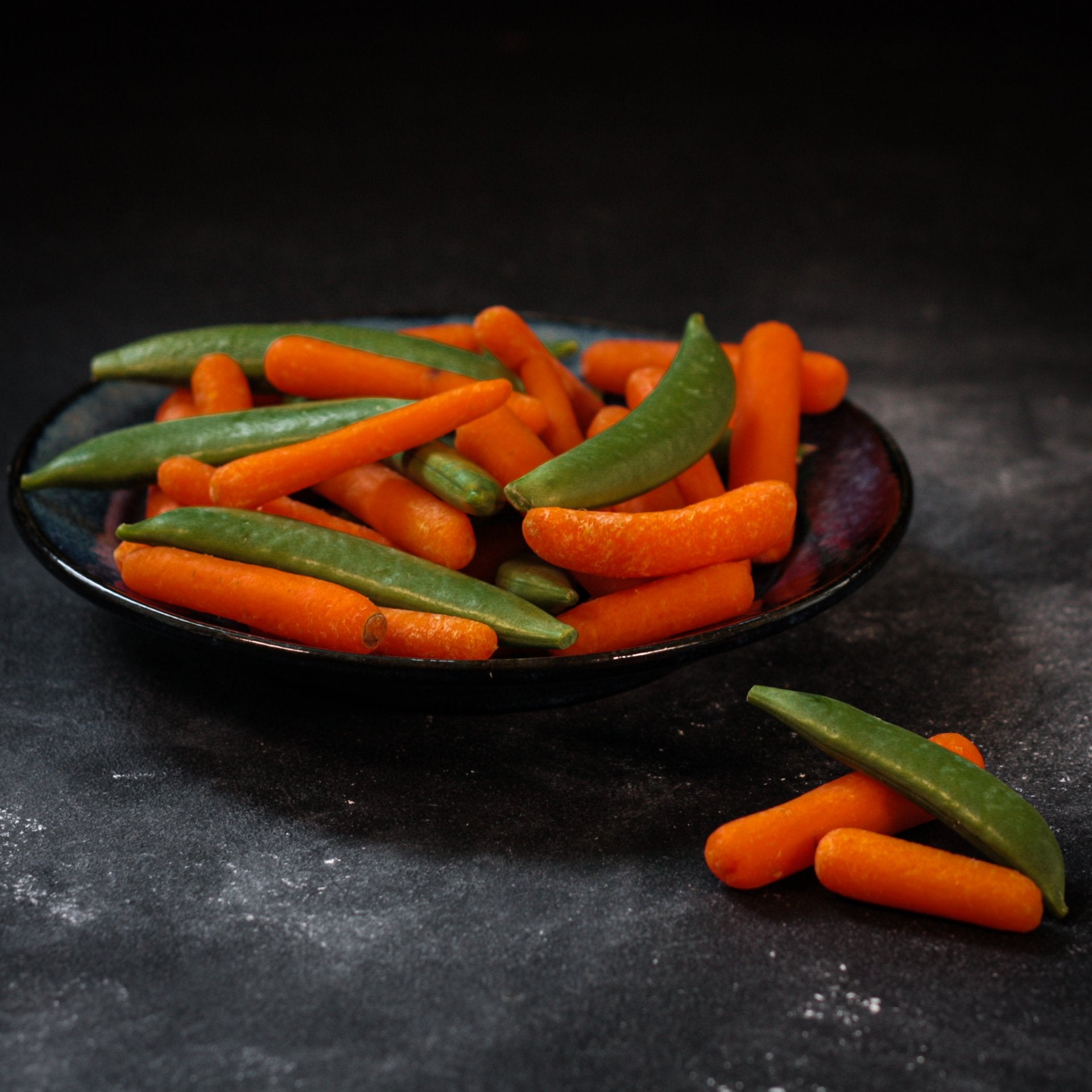 Osviežujúca zmes baby mrkvy a cisárskeho hrášku je vynikajúcou voľbou pre prípravu rýchleho a chutného jedla. Zmes je šťavnatá a krehká vďaka čomu sa hodí surová na oživenie zeleninových šalátov, či tepelne upravená, ako príloha, k mäsovým jedlám.