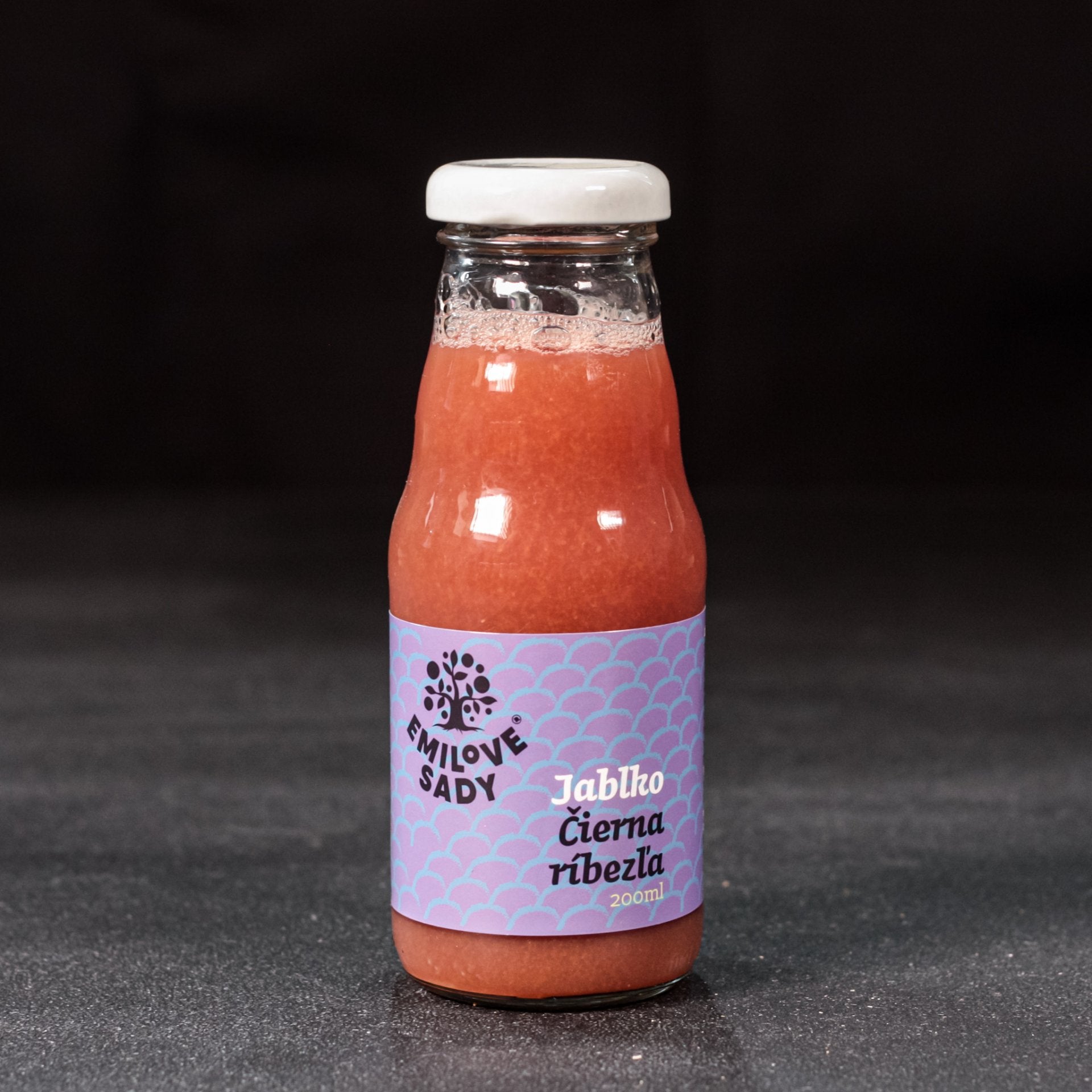 Zloženie: jablková šťava 75 %, šťava z čiernej ríbezle 25 %.